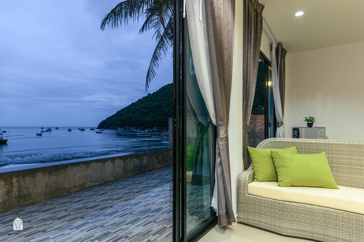 ห้องพักชั้น 2 สามารถมองวิวทะเล ยืนรับลมเย็นๆ ที่ระเบียงได้เลย
