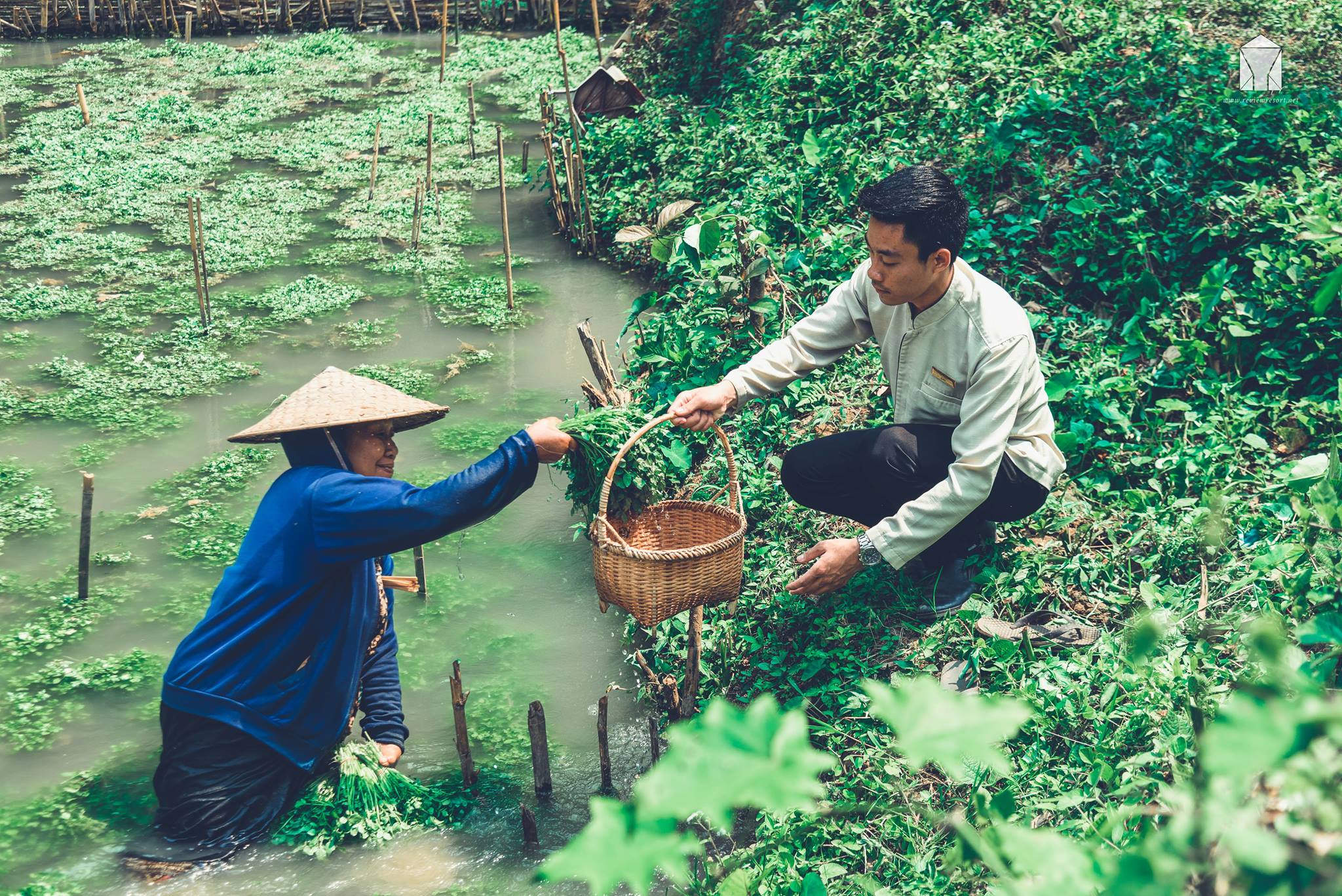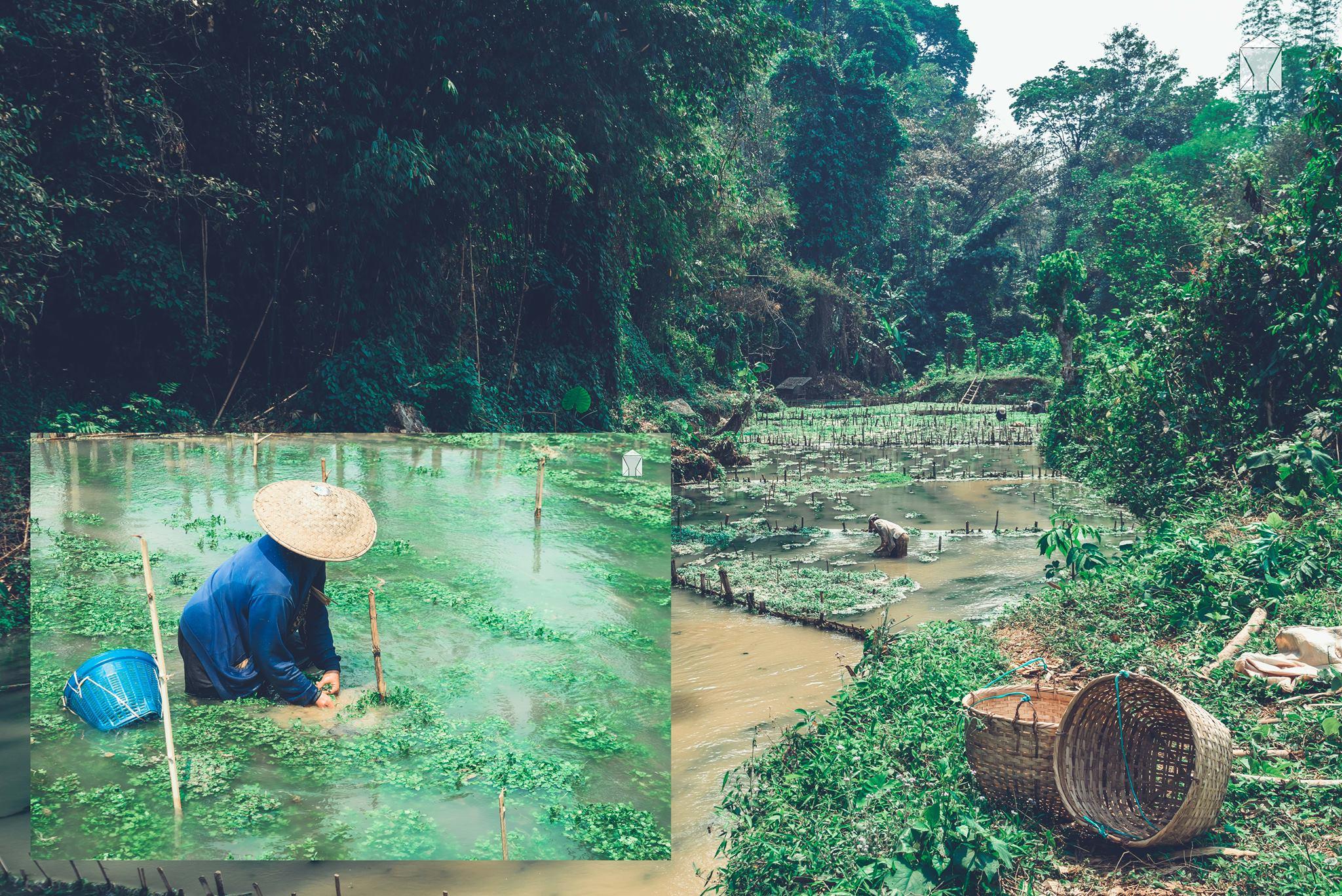 ที่นี่คือแหล่งปลูก “วอเตอร์เครส” (Watercress) หรือ “สลัดน้ำ” คนลาวจะเรียกผักชนิดนี้ว่า “ผักน้ำ”