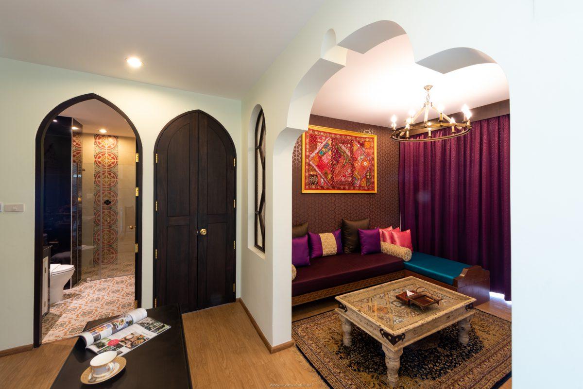 โดยห้องพักทั้งหมดของที่นี่จะมีหลายรูปแบบทั้งแบบ 1 ห้องนอน และ 2 ห้องนอน รองรับทุกการเข้าพักของทุกกลุ่มลูกค้า ซึ่งแขกทุกคนที่เข้าพัก สามารถใส่ชุดส่าหรี่ เดินเที่ยวถ่ายรูปภายในโรงแรมได้ฟรี! พร้อมพรอพอีกมากมายหลายชิ้น แบบที่เราไม่ต้องเตรียมจากบ้านมาเยอะแยะ แต่ถ้าใครเตรียมตัวมาว่ายน้ำ ทางโรงแรมสามารถเสิร์ฟขนมและเครื่องดื่มแบบถาดลอยน้ำ ให้คุณได้ว่ายน้ำ ถ่ายรูปชิคๆ ไปพร้อมดื่มด่ำขนมและเครื่องดื่มสดชื่น หรือชาหอมๆ ผ่อนคลายได้เลย เพียงสั่งชุด Afternoon tea ที่มีให้เลือกอยู่หลากหลายเซต (2 คน/เซต)