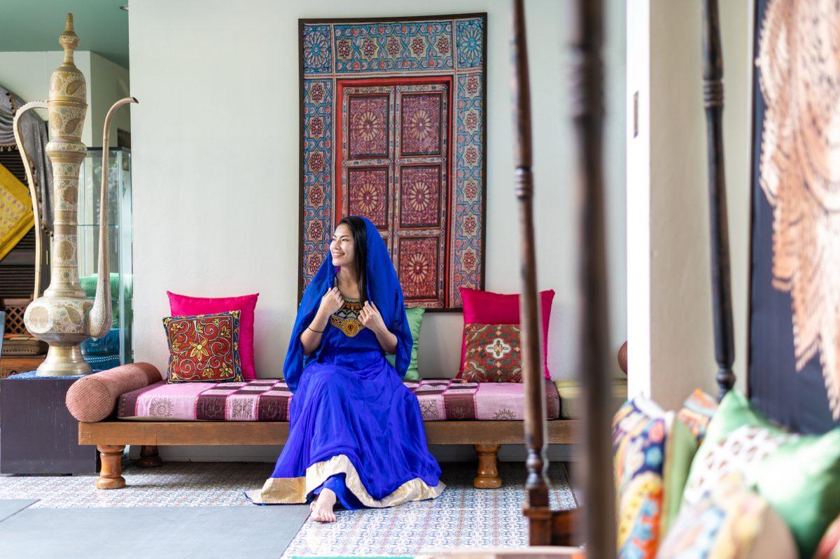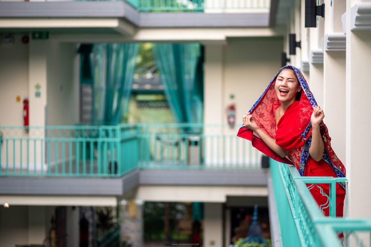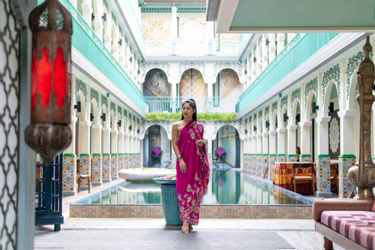 มาต่อกันที่ฟิลลิ่งของความประทับใจนับตั้งแต่ก้าวเท้าเข้าไปในโรงแรมที่โอ่โถงอลังการ สิ่งที่เราเห็นมันทำให้เราตื่นเต้นมากกกก เพราะเค้า Keep Concept ไว้ได้ดีไม่มีหลุด ด้วยชุดส่าหรีสไตล์หนุ่ม-สาวแขก ที่เตรียมไว้ให้แขกที่มาเข้าพัก เลือกใส่เล่นถ่ายรูปกันได้ทั่วทุกมุมในโรงแรม แต่เห็นจะเด่นสุดก็มุมสระว่ายน้ำใจกลางโรงแรมนี่แหละ ที่มีพรมวิเศษแบบอะลาดิน ลอย..น้ำ รอสาวๆ จินนี่มานอนแชะภาพกันสวยๆ แบบว่าได้ประสบการณ์การพักผ่อนสุดเก๋กับรูปสวยๆ แน่นๆ แน่นอน